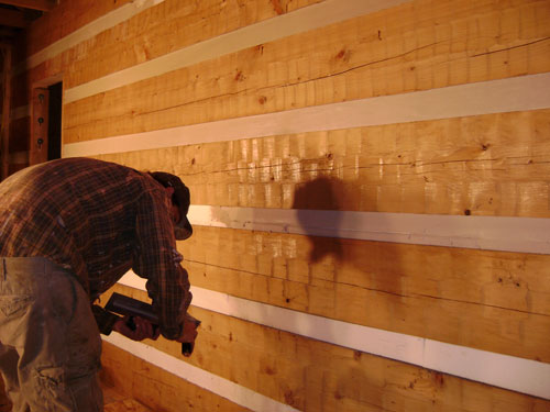 If we are chinking a new log home, we make sure the logs are properly sealed with stain and cleaned, apply the backing material, then apply the chink. Done properly, chinking should provide an effective barrier for years to come.